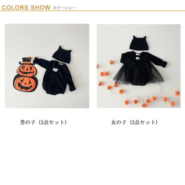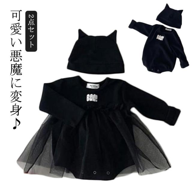 コスチューム ハロウィン コスプレ ワンピース 男の子 女の子 ロンパース ベビー服 帽子 着ぐるみ 長袖 ベビー服 ロンパース 幽霊 衣装 赤ちゃん服 仮装 2点セット 小悪魔 コスチューム 変装