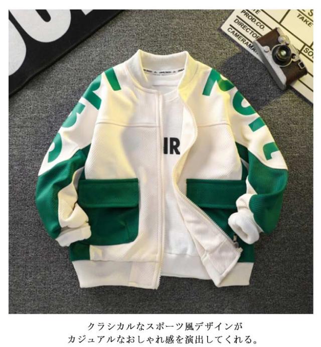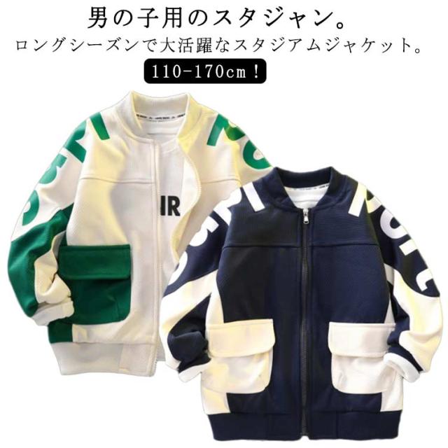 ジップアップ ブルゾン ボーイズ トップス 長袖 子ども服 春 ジュニア 子供服 秋 MA-1 ジャンパー 男の子 羽織り ライトアウター おしゃれ キッズ ベビー服 男児 バイカラー スタジャン カジュアル 150 入学 入園 お出かけ 通学 110 120 130 140 キッズ 160