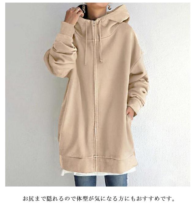 | ロング丈のスウェットパーカー! ゆったりとしたサイズ感で楽に着用いただけます。 お出かけにはもちろん、部屋着としても大活躍間違いなし! お尻まで隠れるので体型が気になる方にもおすすめです。 | |