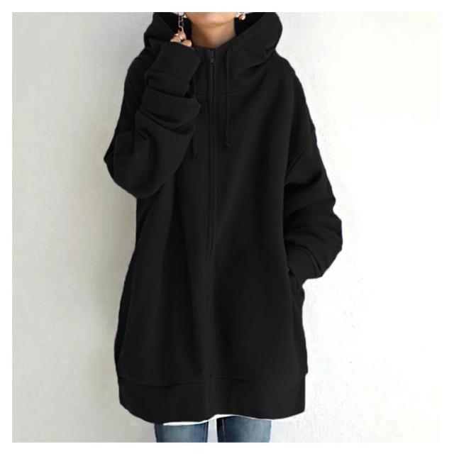 スウェット ロングカーディガン ロング丈 長袖 ボリュームネック ハイネック 送料無料 パーカー 無地 フード付き ジップアップパーカー パーカー 裏起毛 レディース 薄 ロングパーカー トップス 体型カバー 着痩せ あったか おしゃれ ゆったり 大きいサイズ 防寒 秋冬