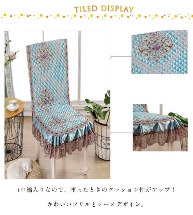 2枚組 中綿入り 椅子カバー 背もたれ レース チェアカバー 花柄 ダイニングチェアカバー ロングチェアシート おしゃれ 座椅子カバー デスクチェアーカバー 45×149cm イスカバー 座面カバー フリル ブルー 滑り止め かわいい ベージュ ブラウン 2枚組 可愛い