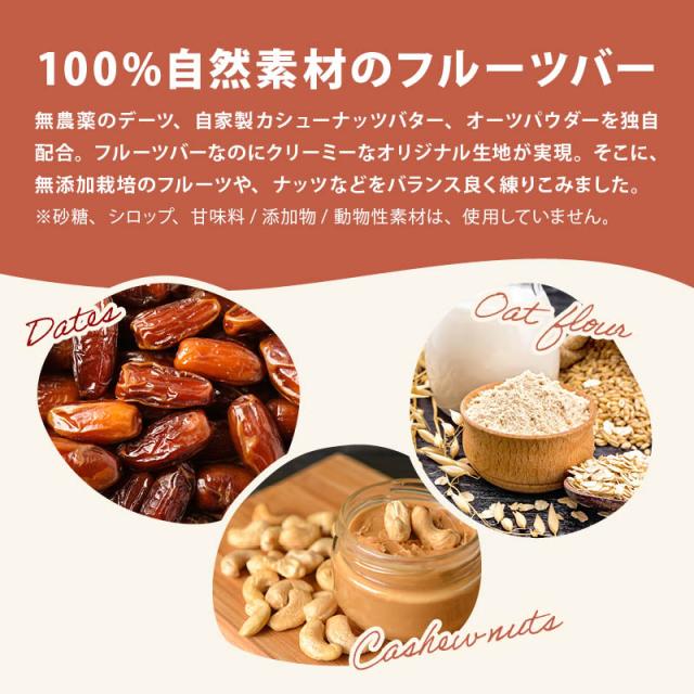 無農薬のデーツ、自家製カシューナッツバター、オーツパウダーを独自配合。