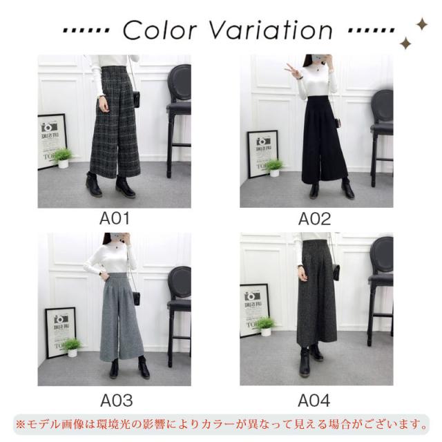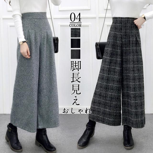 『2点ご購入で300円OFF』ガウチョパンツ レディース ワイドパンツ ハイウエス スカーチョ 秋冬 厚手 体型カバー ボトムス 美脚 ズボン カジュアル 無地