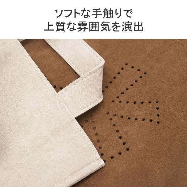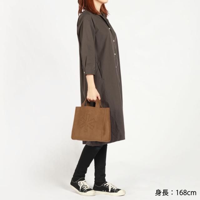 ソフトな手触りと上質な素材感が魅力の合皮スエードを使用した『Vegan Leather』シリーズ。こちらは、日常使いがしやすいサイズ感のトートバッグです。底マチをしっかり設けることで自立するように設計され、屋外での使用にも最適。キャンプ中のちょっとした買い出しや食事処への行き来に重宝します。