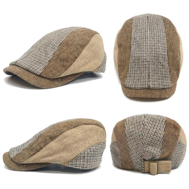 ハンチング 帽子 メンズ つば長 秋冬に最適 チェック柄 ツイード 縦はぎデザイン 56cm-59cm 小顔 hun-685 ハンチング帽 レディース 秋冬 ゴルフ 厚手 サイズ調節 お洒落 ウール混 30代 40代 50代 60代 70代 80代 お父さん プレゼント