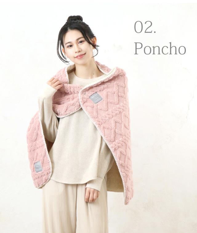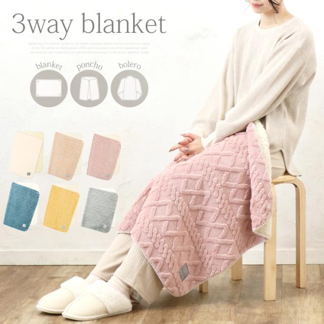【送料無料】アラン編み風 3WAY ひざ掛け 490-9621 490-9622 ブランケット 膝掛け ポンチョ ボレロ 羽織 起毛 フリース ボア ニット柄 編み込み柄 無地 アイボリー ベージュ ピンク ブルー マスタード グレー 白 青 黄色 2664