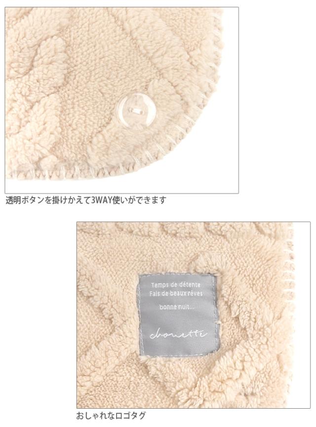 ボタンホールとボタンがついているのでひざ掛け、ポンチョ、ボレロの3つの使い方ができます。