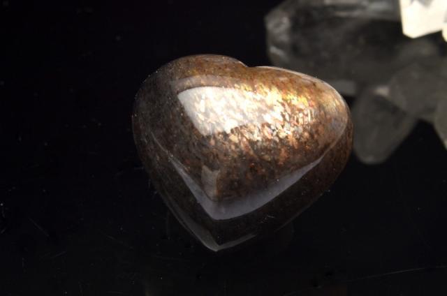 【1点物】インド産 ブラックサンムーンストーン 21x18mm ハート ルース 金運・仕事運_PB7001