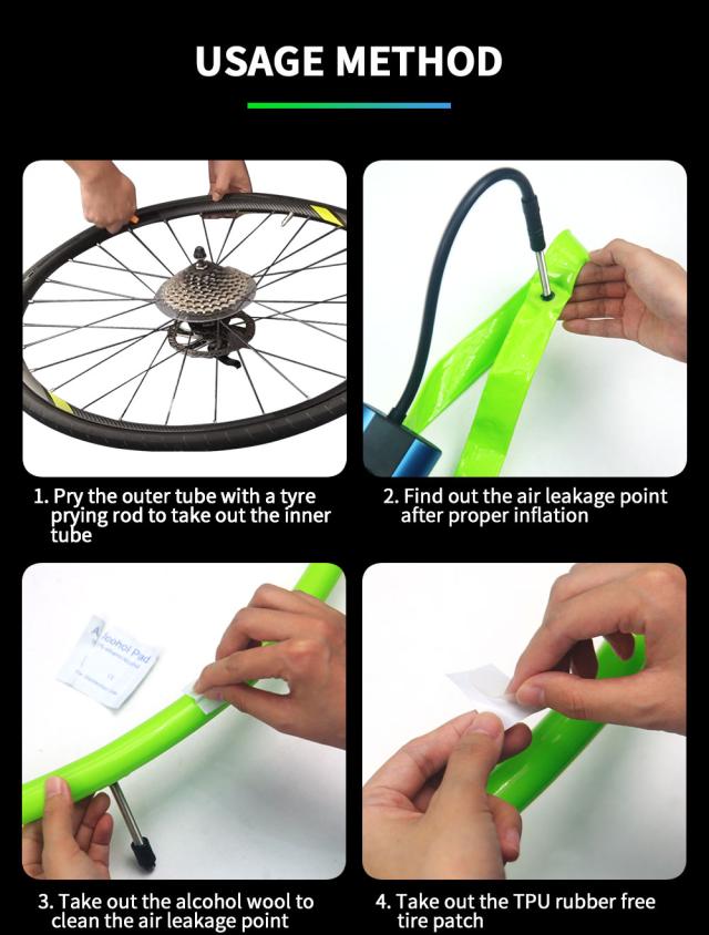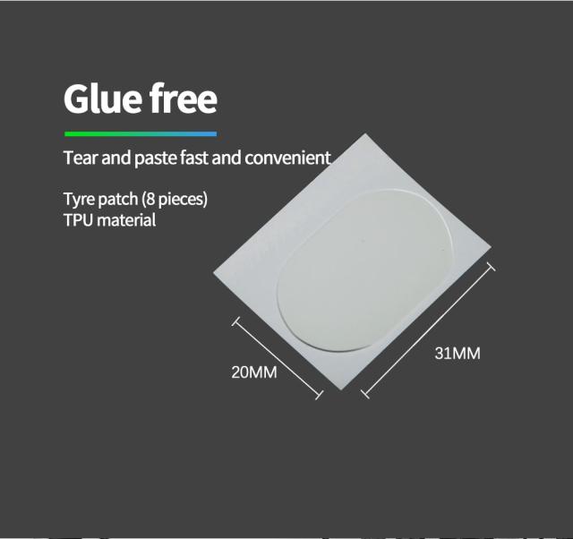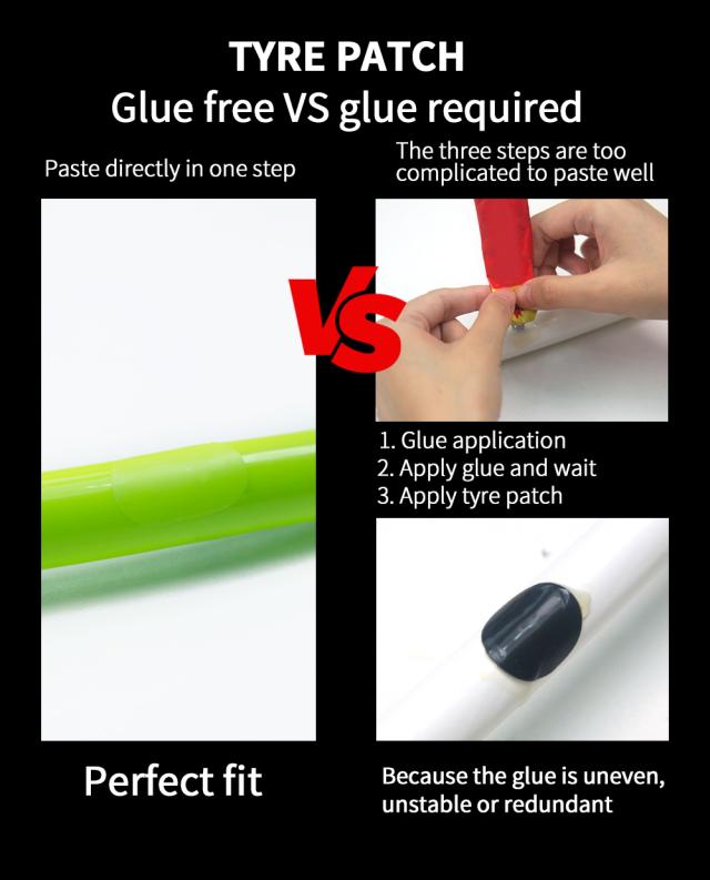 ? 接着剤なしのパッチ :従来の接着剤ベースのパッチ方法とは異なり、この製品は強力な接着剤を使用して、接着剤を必要とせずに自転車のインナーチューブにパッチを当て、使いやすく便利にします。