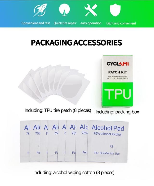 ? TPU素材 :高品質のTPU素材で作られたこの製品は、耐久性と長持ちがあり、自転車のインナーチューブに長時間パッチを当てたままになります。