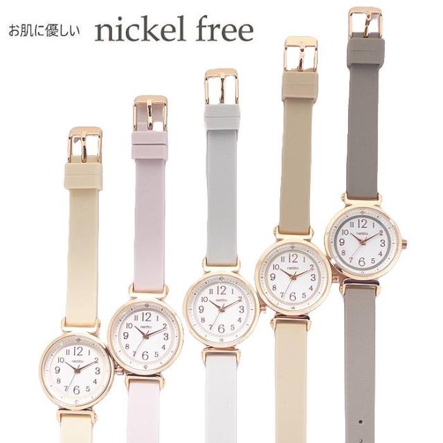 ◆1)アイボリー(ライトベージュ系)◆ ベルト:アイボリー/文字盤:ホワイト/ケース・針・インデックス・尾錠:ピンクゴールド ◆2)ピンク(ライトパープル系)◆ ベルト:ピンク/文字盤:ホワイト/ケース・針・インデックス・尾錠:ピンクゴールド ◆3)ブルー(グレー系)◆ ベルト:ブルー/文字盤:ホワイト/ケース・針・インデックス・尾錠:ピンクゴールド ◆4)ベージュ(ライトブラウン系)◆ ベルト:ベージュ/文字盤:ホワイト/ケース・針・インデックス・尾錠:ピンクゴールド ◆5)グレー(ダーク系)◆ ベルト:グレー/文字盤:ホワイト/ケース・針・インデックス・尾錠:ピンクゴールド |