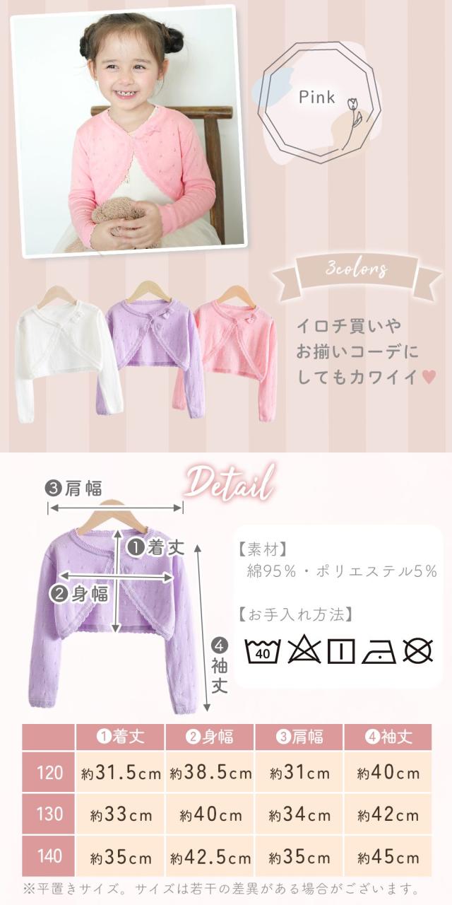 ボレロ 子供 キッズ 120cm 130cm 140cm キッズボレロ バレエ 可愛い かわいい おしゃれ シンプル 上着 アウター 洗える 洗濯可能 お揃い リボン 綿 コットン ピアノ発表会 結婚敷 フォーマル 7歳 8歳 9歳 10歳 11歳 12歳 カーディガン 子供服 羽織り 上品 MILASIC TN-BLRO
