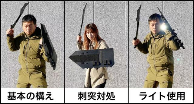 また、盾やスティックが大きすぎると多くの家屋内で使用し難いため、近接戦闘に適した小ぶりのサイズにしております。