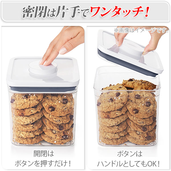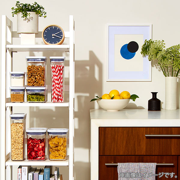 オクソーのポップコンテナは、片手で簡単に開閉できる乾燥食品用の保存容器です。