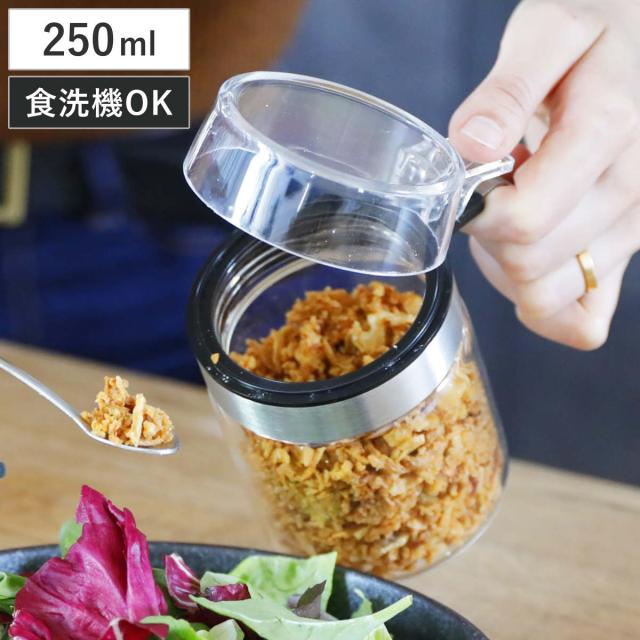 調味ポット 250ml atomico 食洗機対応 耐熱ガラス製 ( アトミコ 調味料入れ ガラス 保存容器 スパイス ジャー ポット ワンタッチ開閉 ハンドル付き スプーン付き 調味料 ストッカー 詰め替え 保存瓶 ガラス瓶 スパイス入れ )