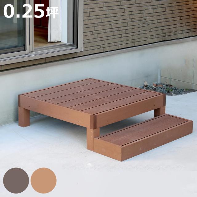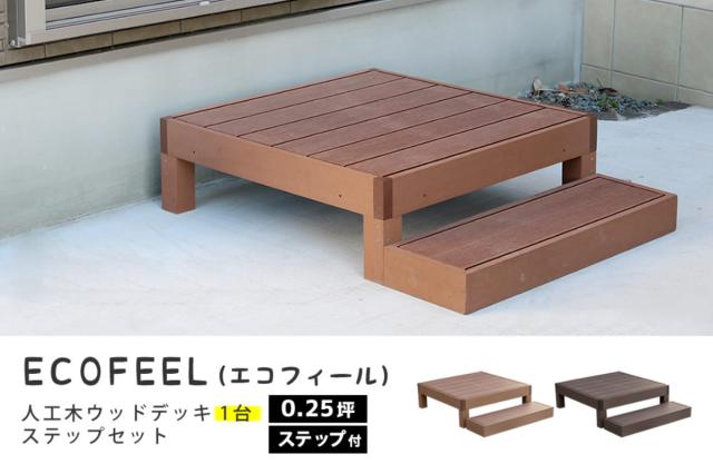 人工木ウッドデッキ ecofeel エコフィール 1台 ステップセット 0.25坪 ( ガーデンデッキ 人工木デッキ 人工木 DIY 縁台 ぬれ縁 90×90cm セット 掃き出し窓 連結 人工木材 バルコニー 庭 エクステリア 外構 簡単 )