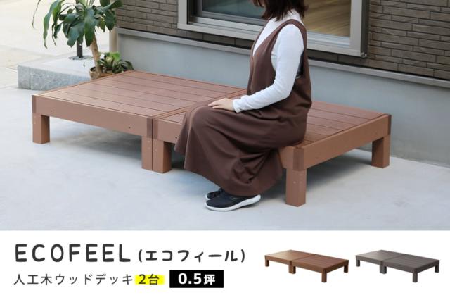 人工木ウッドデッキ ecofeel エコフィール 2台 0.5坪 ( ガーデンデッキ 人工木デッキ 人工木 DIY 縁台 ぬれ縁 90×90cm 単品 掃き出し窓 連結 人工木材 バルコニー ステップ 庭 エクステリア 外構 組立て簡単 組合せ )