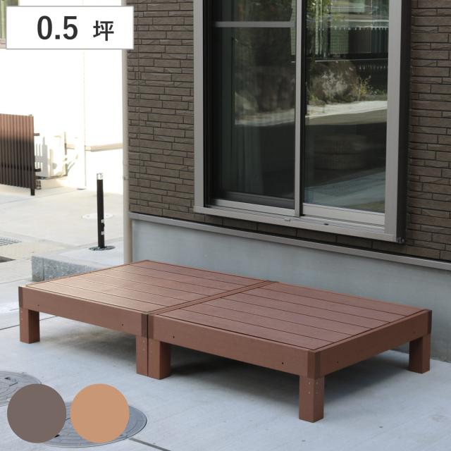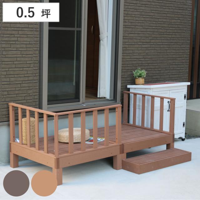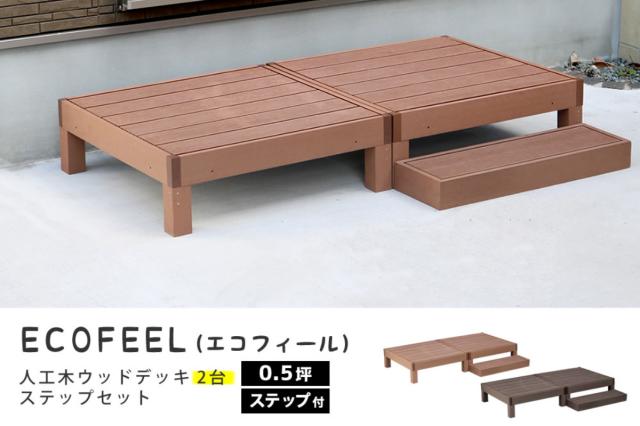 人工木ウッドデッキ ecofeel エコフィール 2台 ステップセット 0.5坪 ( ガーデンデッキ 人工木デッキ 人工木 DIY 縁台 ぬれ縁 90×90cm セット 掃き出し窓 連結 人工木材 バルコニー 庭 エクステリア 外構 簡単 )