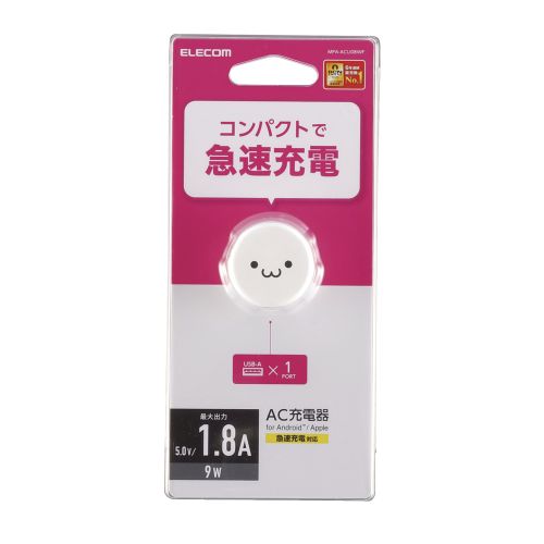 エレコム スマホ充電器 AC充電器 USB-Aメス 1ポート 1.8A出力 コンパクト ホワイトフェイス(MPA-ACU08WF) 取り寄せ商品