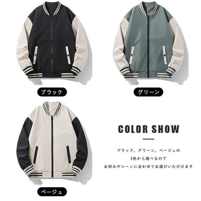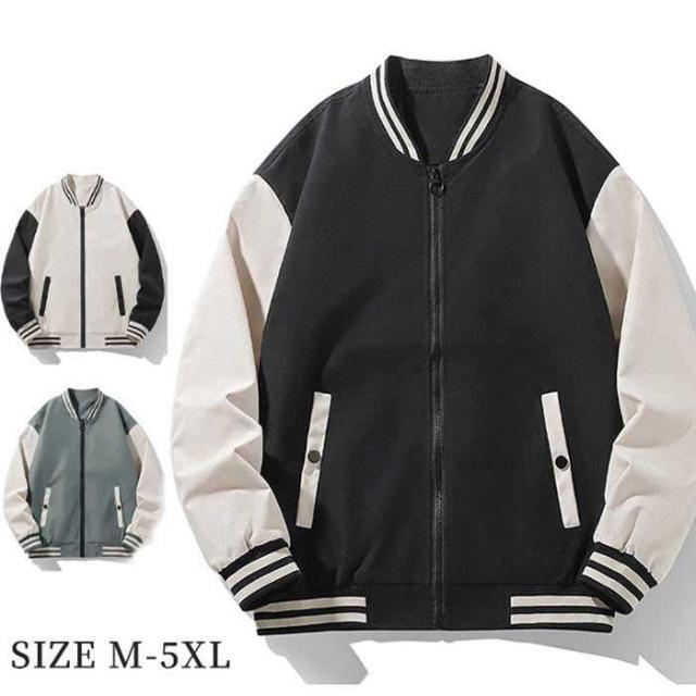 商品名:メンズジャケット スタジャン スプリングコート ジャンパー バイカラー アウター ブルゾン 長袖 大きいサイズ 通気性抜群 野球服 秋コート 春コート 春物 春服 ジュニアジャケット カジュアルコーデ シンプル 上着 スウェット 防寒 秋 冬 高校生 男性用 通勤 通学 男性 20代 30代 40代