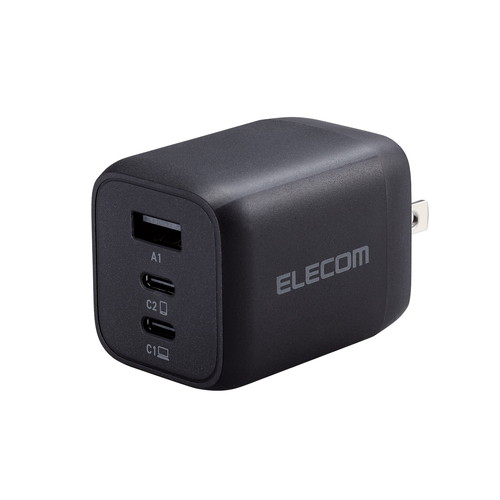 対応機種:各USB Type-C(TM)(USB-C(TM))ポートからUSB Power Delivery (65W)及びオプション規格であるPPS(Programmable Power Supply)、またはUSB-Aポートから12Wの規格内で充電が可能な機器。2ポート以上同時接続時、合計最大65Wまでの出力で充電、給電可能な機器とその組み合わせ。 コネクタ形状:USB Type-C(TM)(USB-C(TM))ポート×2、USB-Aポート×1 定格入力電圧:AC100〜240V、50/60Hz 定格入力電流:2A 外形寸法:幅約52mm×厚み約38mm×高さ約40.5mm