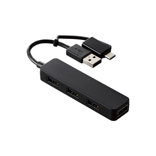 USB-AポートにもUSB Type-C(TM)ポートにも接続できる、変換アダプター付きUSB2.0ハブです。4つのUSB-Aポートを搭載しています。マウスやキーボード、USBメモリ、USBファン、プ