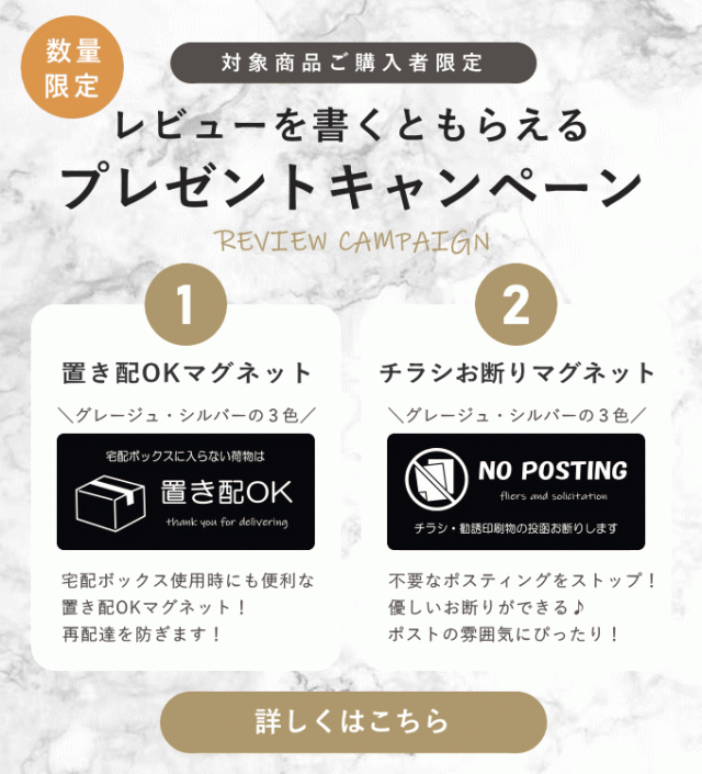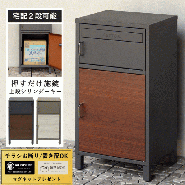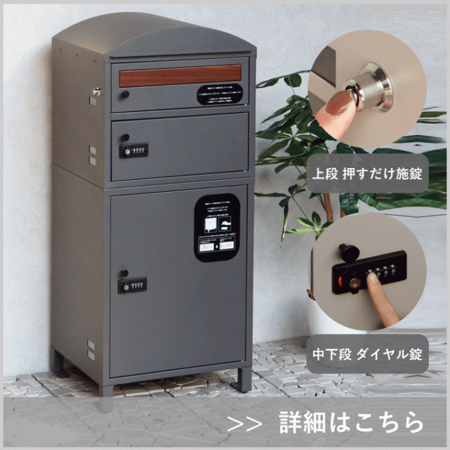 | 郵便物、宅配物どちらも不在時に、荷物を受け取れるポスト付き宅配ボックス。忙しいあなたや、配達の方にも優しい商品です。 押すだけで施錠できるプッシュ錠で防犯性が高いです。 高級感のある郵便受けが個性ある玄関を演出する宅配BOXです。 【セキュリティー】 上段はシリンダー錠付きなので、防犯面に安全です。また、スペアキーが1本付属しています。 下段はプッシュキータイプで簡単に鍵の開閉が可能で防犯性が高いです。また、スペアキーが1本付属しています。 【スリット窓付き】 上段、下段ともにスリット窓付きで、扉を開けなくても宅配物が投函されているかの確認が可能です。 【上段宅配ボックス使用可】 扉側に捺印用の印鑑ホルダーが2個付属しており、上段も下段も宅配ボックスとしての使用が可能です。マグネット式で任意の場所に取り付けることが可能です。 ※印鑑はご自身でご用意ください。 【配達マニュアル付き】 配達マニュアルのメッセージマグネットが付属しています。任意でご使用ください。上段宅配BOXの鍵は宅配業者施錠後、郵便BOXへ入れてもらいます。 【デザイン】 投函口には、LETTERの文字がエンボス加工で施されております。 鏡面仕上げのステンレス製の取っ手を使用しており、デザインのアクセントになっております。 下段扉は木目調で仕上げており、高級感のある仕上がりとなっております。 カラーは、ダークグレーと下段扉がブラウン木目の組み合わせと、ミルクティーベージュと下段扉がホワイト木目の組み合わせの2色からお選び頂けます。 【錆びにくい加工】 ガルバナイズド処理を施している為、錆の発生がしにくい仕様となっております。 ※防水加工は施しておりませんので、軒下や屋根がある場所への設置を推奨致します。 【アンカーボルト付属】 脚部に地面固定用のアンカーボルト穴があり、地面と商品を固定することも可能です。 【簡易組立品】本体部は完成品で、取っ手・脚・アジャスターのみお客様取付の為、お手間を掛けずに商品をご使用いただけます。 |