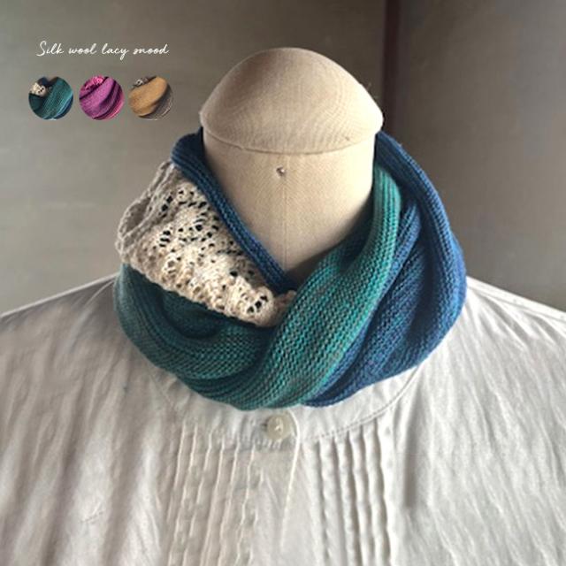 Amiza 大橋メリヤス シルクウール レーシースヌード(マフラー スヌード レディース 首元 あったか 暖かい 秋冬 おしゃれ 日本製 シルク ウール コットン 綿 ナチュラル 女性用 ファッション 冬 小物)