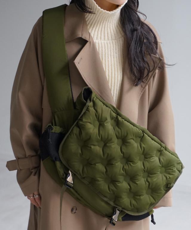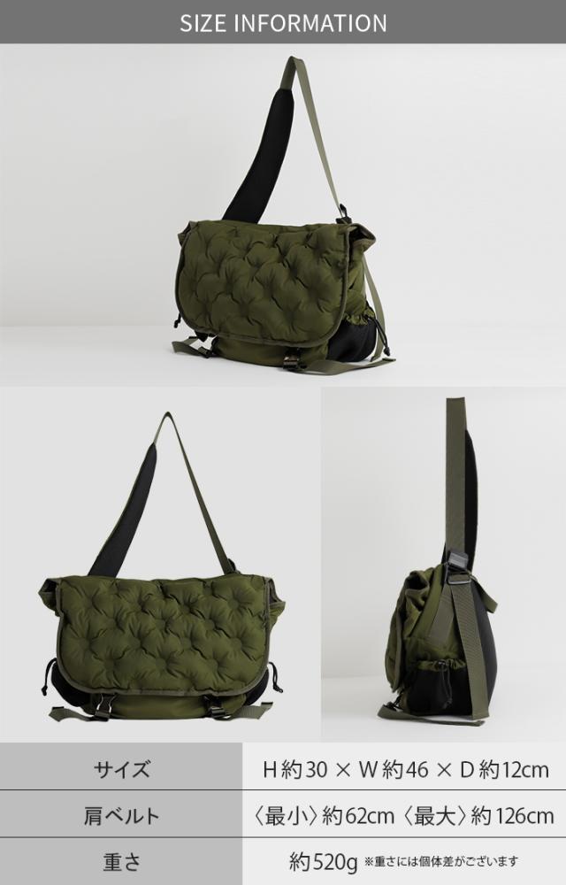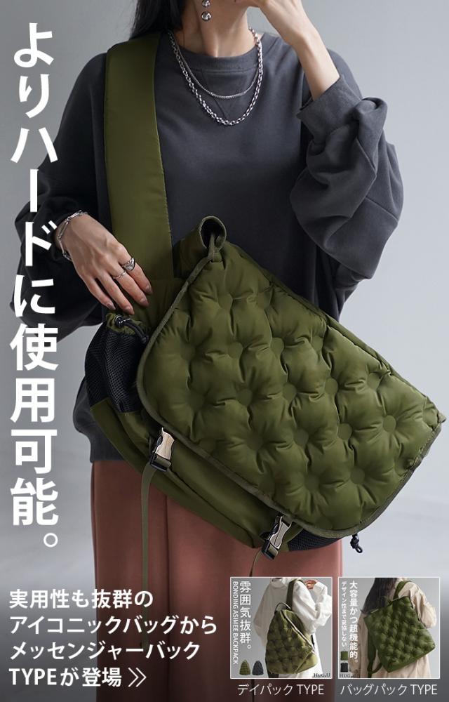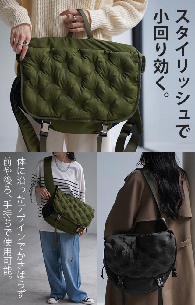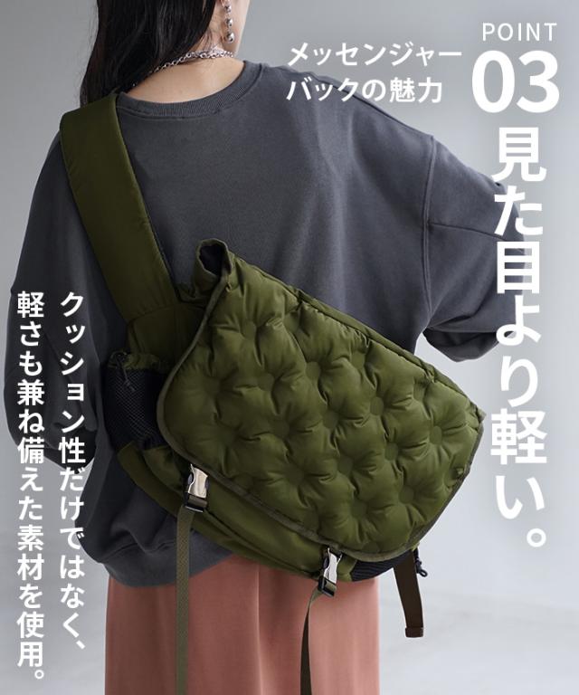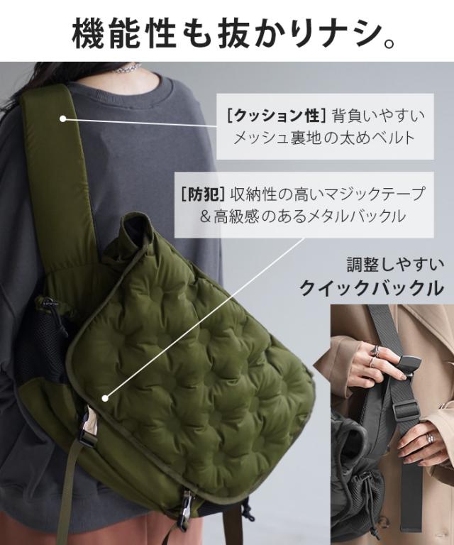バッグ ショルダー メッセンジャー 大容量 ボンディング レディース カバン 鞄 肩掛け インナーポケット ポケット コンパクト 通勤 多機能 小さい おしゃれ モード カジュアル 軽量 旅行 女性 ユニセックス ぽこぽこ おしゃれ 黒 カーキ 秋 冬 HUG.U 秋新作