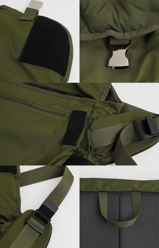 - バッグのフタの部分がダウンぽい生地でできてて、やわらかいです。中の収納のところにファスナーか、ボタンがついてると もっと良かったので星3つです。