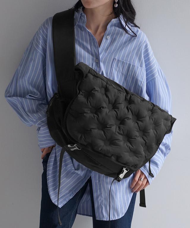 凹凸のあるぽこぽことしたフォルムが可愛らしいメッセンジャーバッグです。