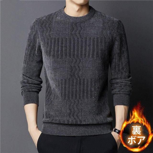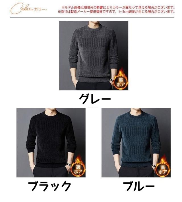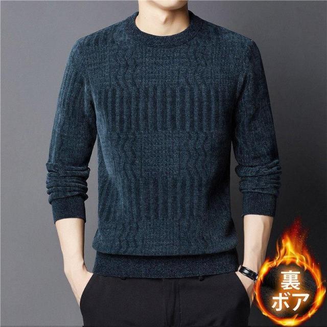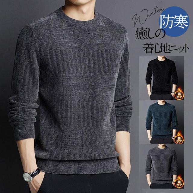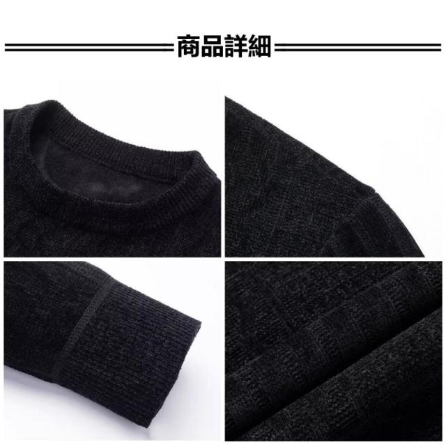 ニット セーター メンズ ニットセーター 裏起毛 長袖 クルーネック ビジネスセーター 厚手 無地 防寒 暖かい 秋冬