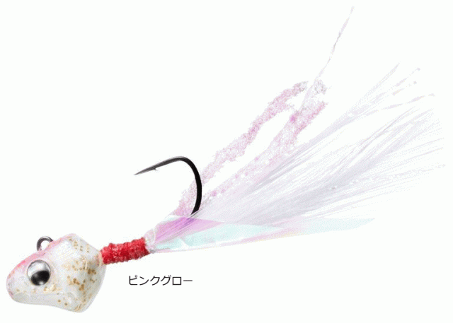 ジグヘッド内蔵の樹脂ヘッドには、天然羽毛、キラキラ光るティンセル、オーロラホロフィルム、ウィリー糸の素材を使用し、ナチュラルにアピールします。ジグヘッドをABS樹脂で包み込むことで、同重量のジグヘッドよりもスローフォールを実現。これらの4種の素材を巻いてボリュームを出すことでナチュラルな浮遊感とシルエットでメバルにアピールします。ワームを付けないため手返しが良好で、フグに強いのも特徴です。ワームをセットする必要がないので、ズレたり切れたりする心配がなく、フッキングをミスしてもセカンドバイトが狙いやすいです。