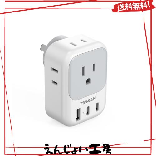 オーストラリア 変換プラグ o型 4個AC口 2USB-Cと1USB-Aポート TESSAN 変換プラグ oタイプ 海外旅行用 コンセント変換プラグ o 電源変換