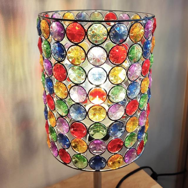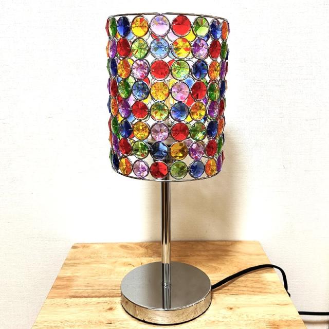 カラフルで華やかなデザインのテーブルランプです。