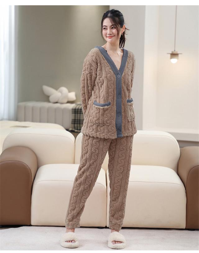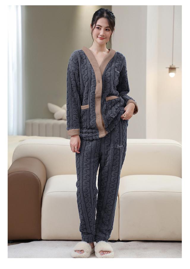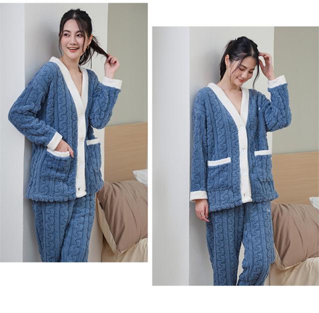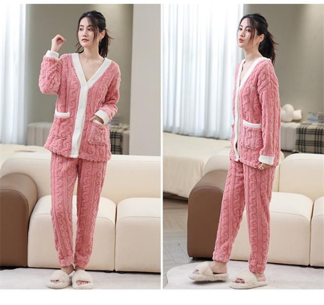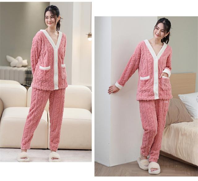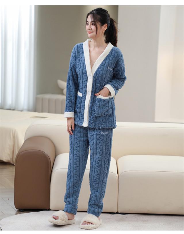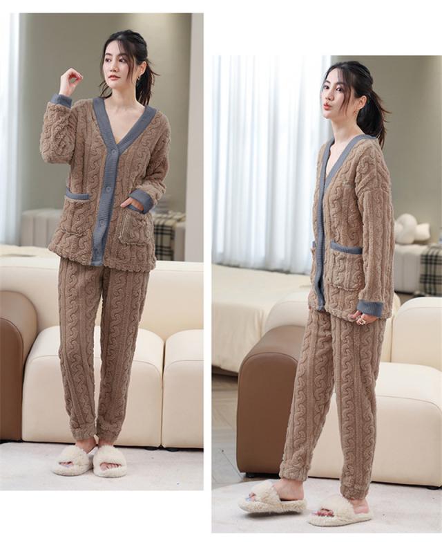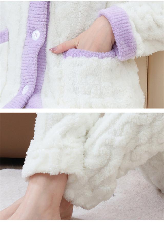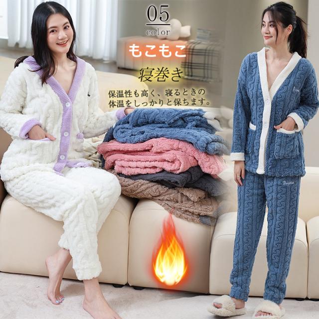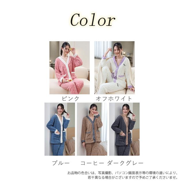 パジャマ レディース ルームウェア 前開き 2点セット 上下セット パジャマペア 寝巻き 部屋着 厚手 もこもこ 可愛い ふわふわ