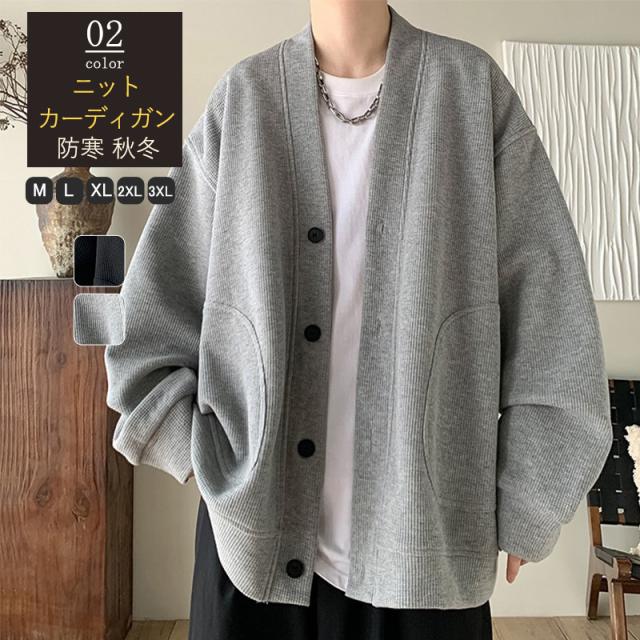 ニットカーディガン メンズ パーカー 秋服 アウター 長袖 vネック スウェット パーカー トレーナー カジュアル ゆったり 大き