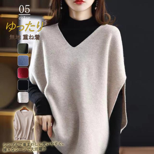 ニットベスト レディース ニット ベスト Vネック セーター ノースリーブ トップス ニットタンク プルオーバー ゆったり 無地