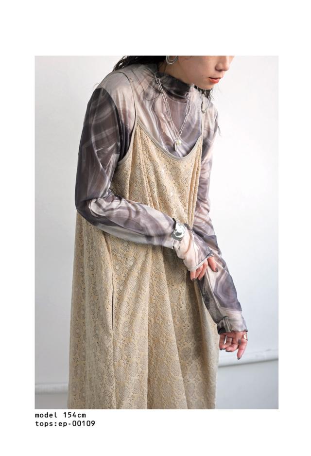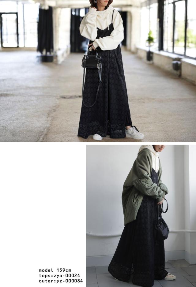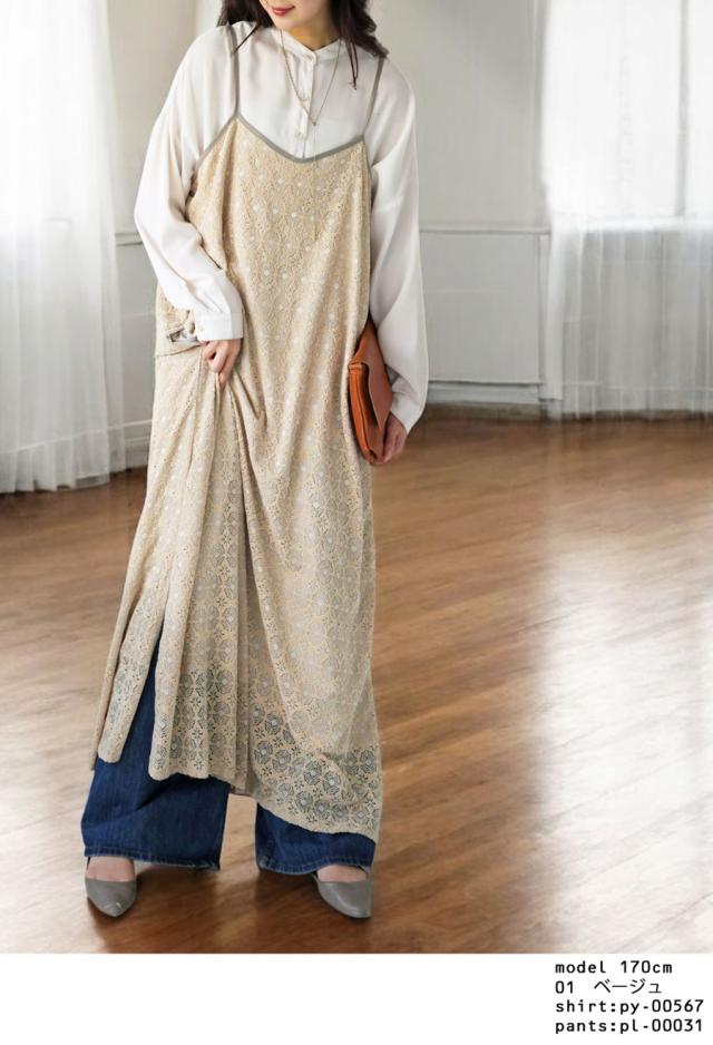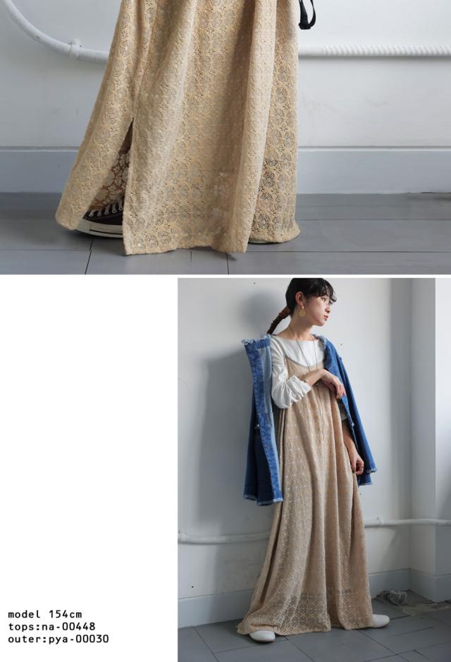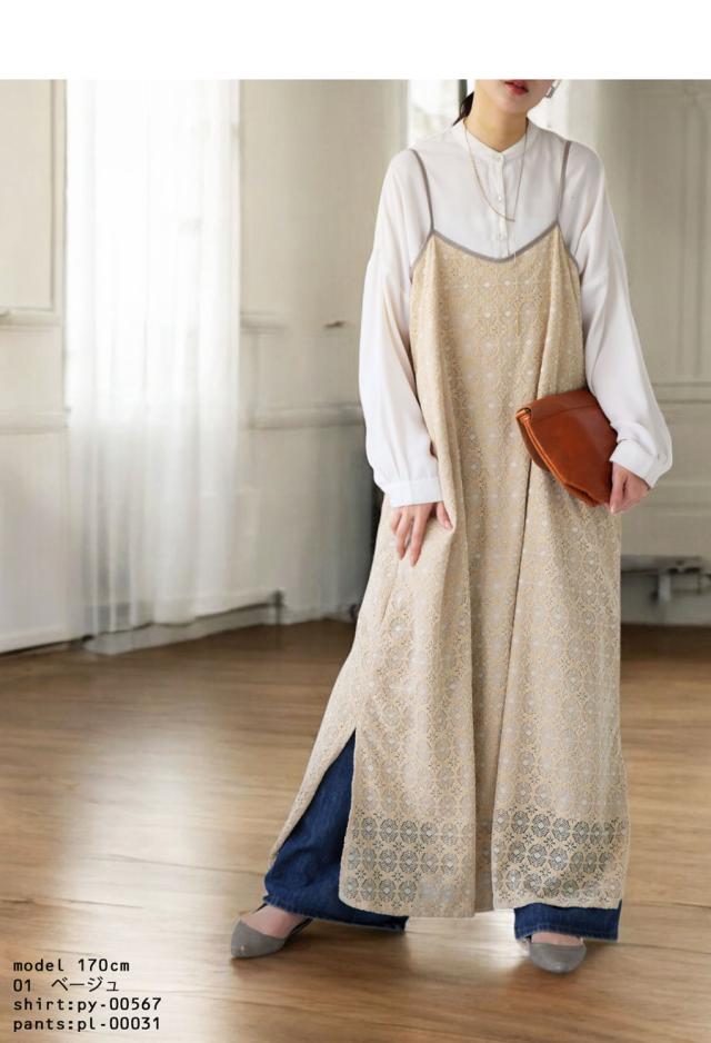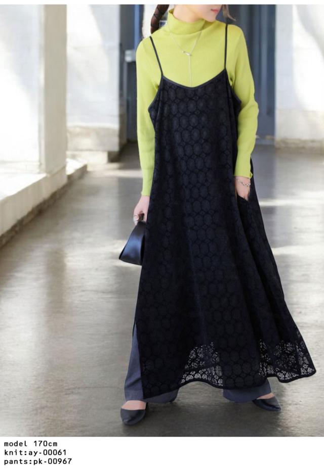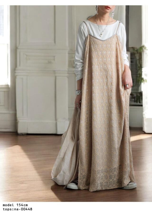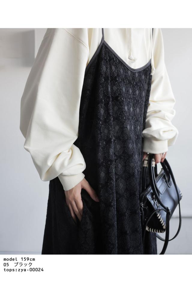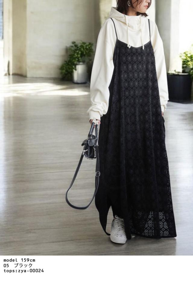 po-00192 レース ベロア 切り替え 異素材 ドッキング ゆったり Aライン レイヤード 重ね着 きれいめ 上品 透け感 抜け感 ロングワンピ キャミワンピ ワンピ キャミソール 体型カバー