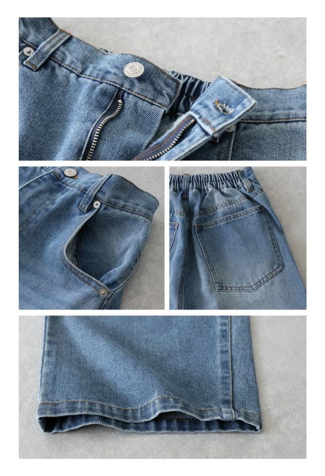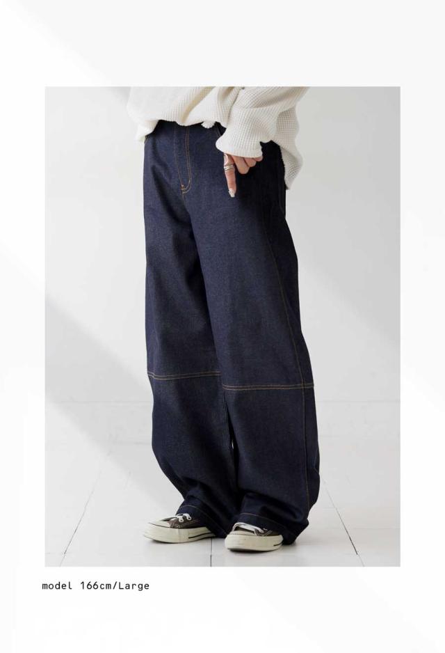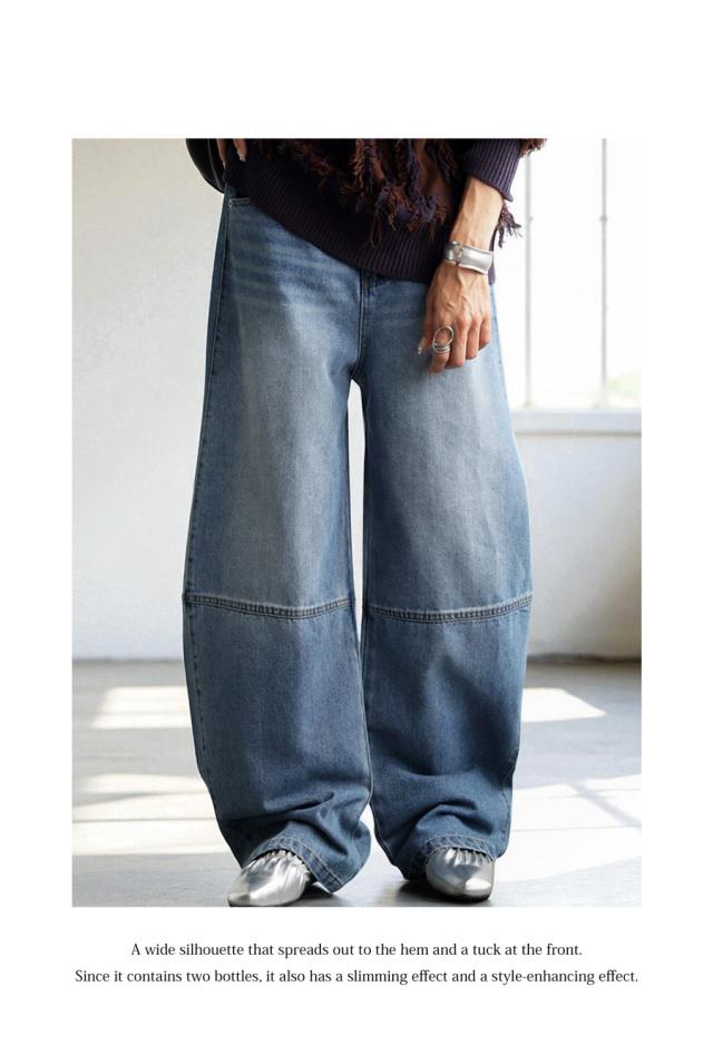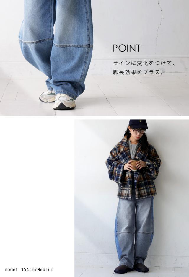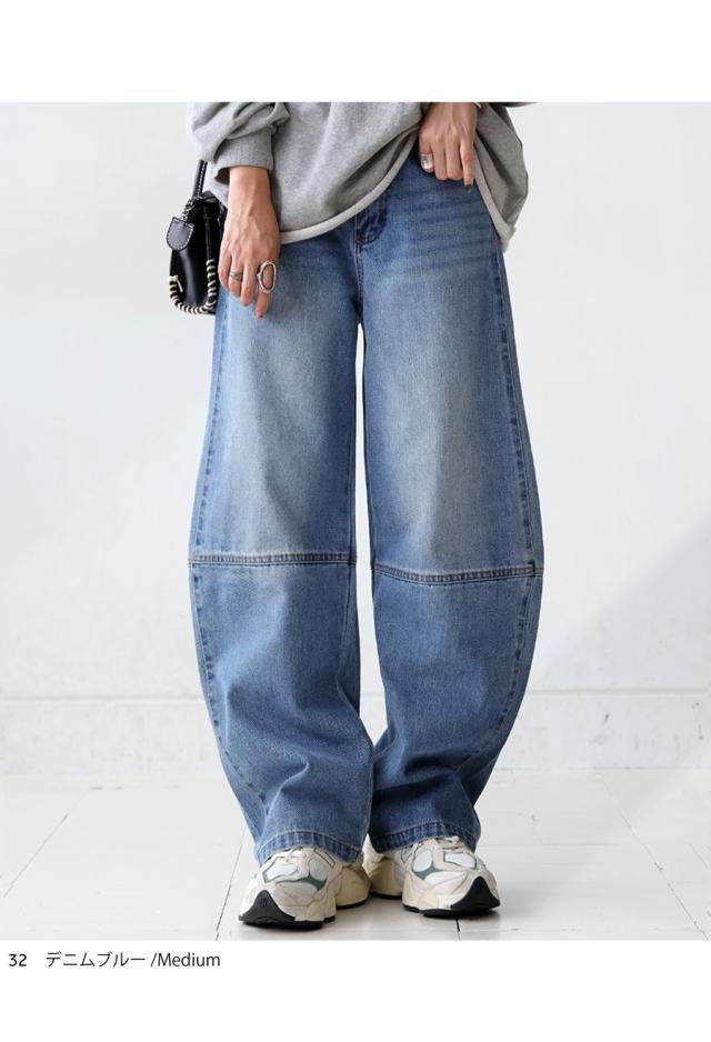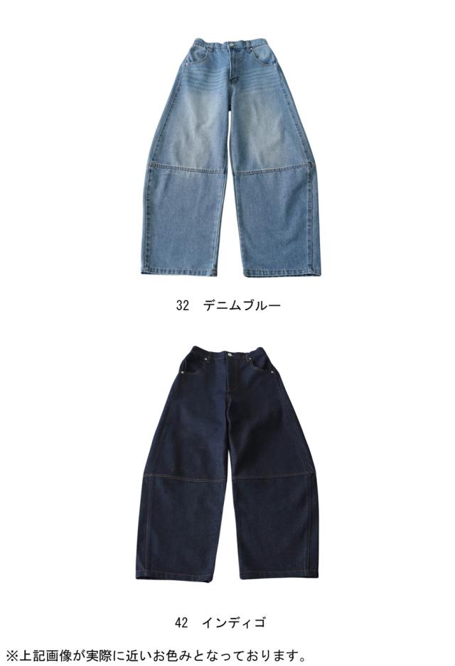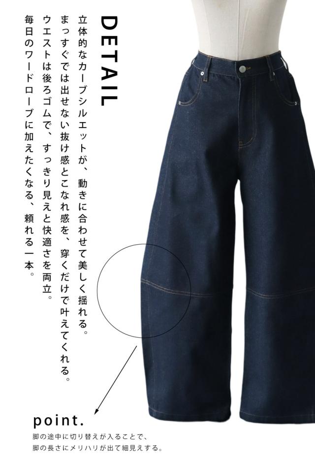ep-00183 パンツ デニムパンツ ジーパン ハイウエスト ワイド ロング 綿100 綿 コットン カーブパンツ バレル 脚長 無地 ウエストゴム 体型カバー ナチュラル ジーンズ 切替