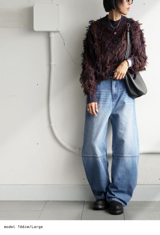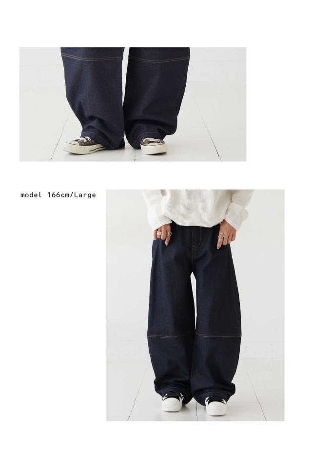 立体的なカーブラインが魅力のデニムパンツです。