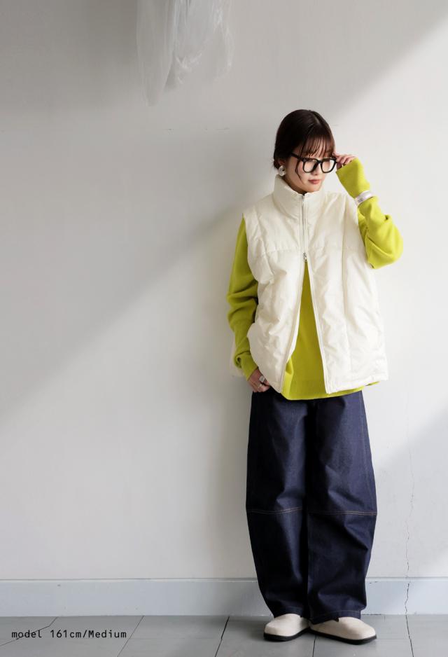 シルエットはワイドながらも計算されたラインで、自然に体型カバーをしてくれる安心感があります。