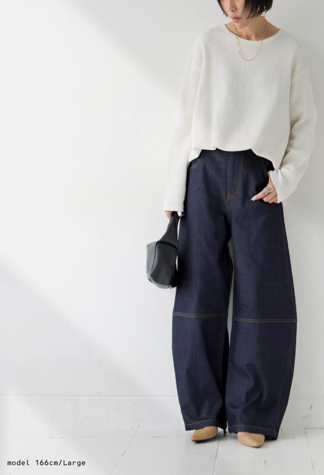 インディゴはハリ感のある濃色デニムで、シックな印象を演出。
