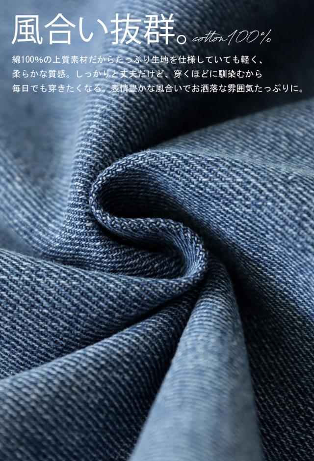 柄は無地のデニム地を活かし、カジュアルにもきれいめにも合わせやすいのが特徴。