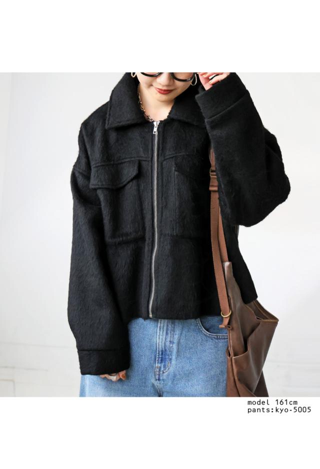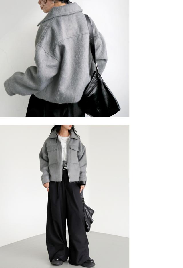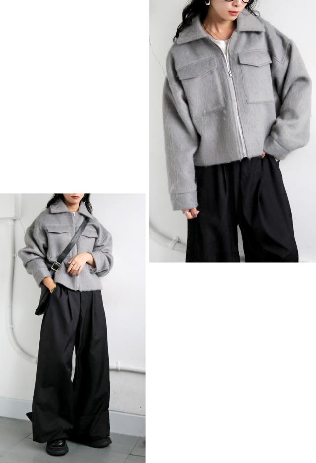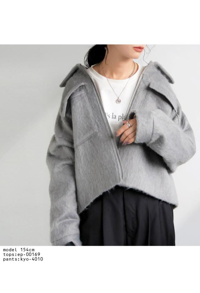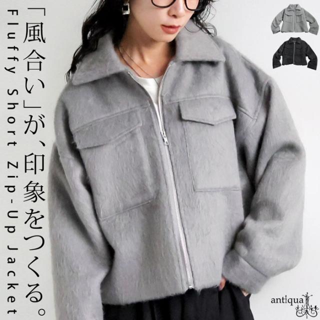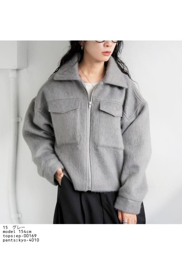 ep-00186 ジャケット 羽織り 長袖 ショート丈 レギュラーカラー ポケット付き ジップアップ 前開き 軽量 保温感 体型カバー ゆったり 高見え カジュアル 上品 ドロップショルダー