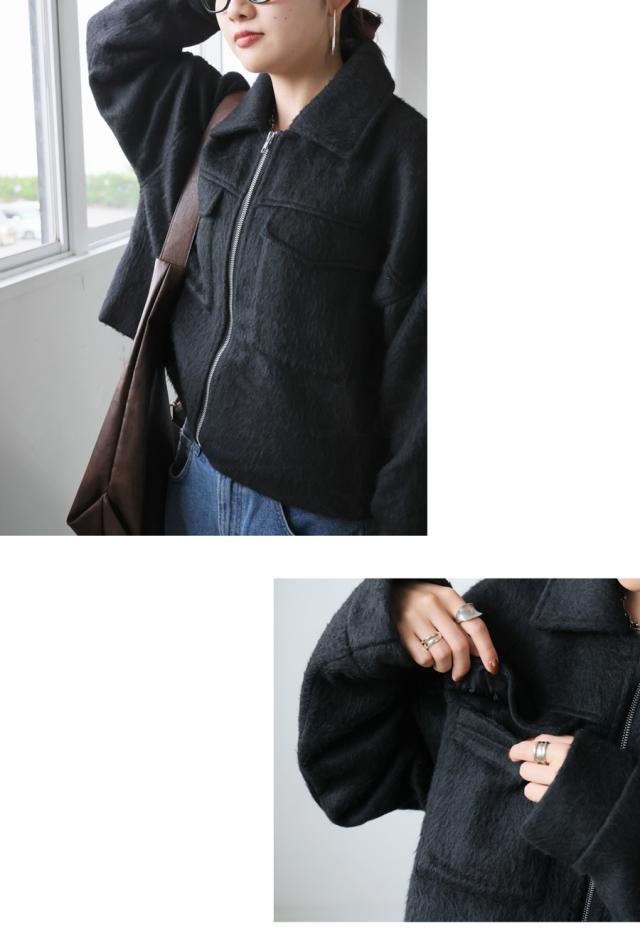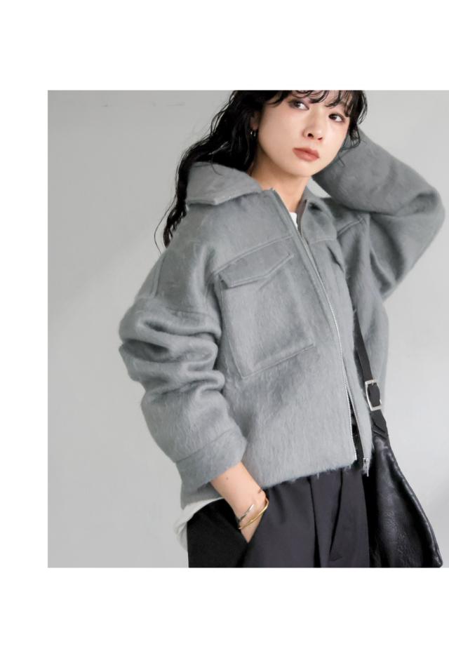 ジップアップ仕様で、カジュアルにも上品にも着回せる万能な形状。