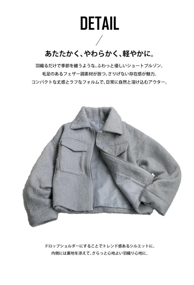 毛足のあるフェザータッチ素材が、軽やかさとあたたかさを両立し、見た目にもやさしい印象を与えてくれます。