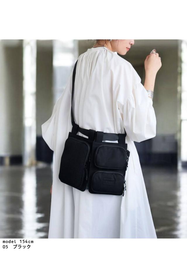 zc-00031z ショルダーバッグ ショルダー 肩掛け ななめ掛け バックパック 多機能 機能性 ファスナー ジッパー メッシュ素材 メッシュ ナイロン生地 コードチップ カラビナ ゴルフピン