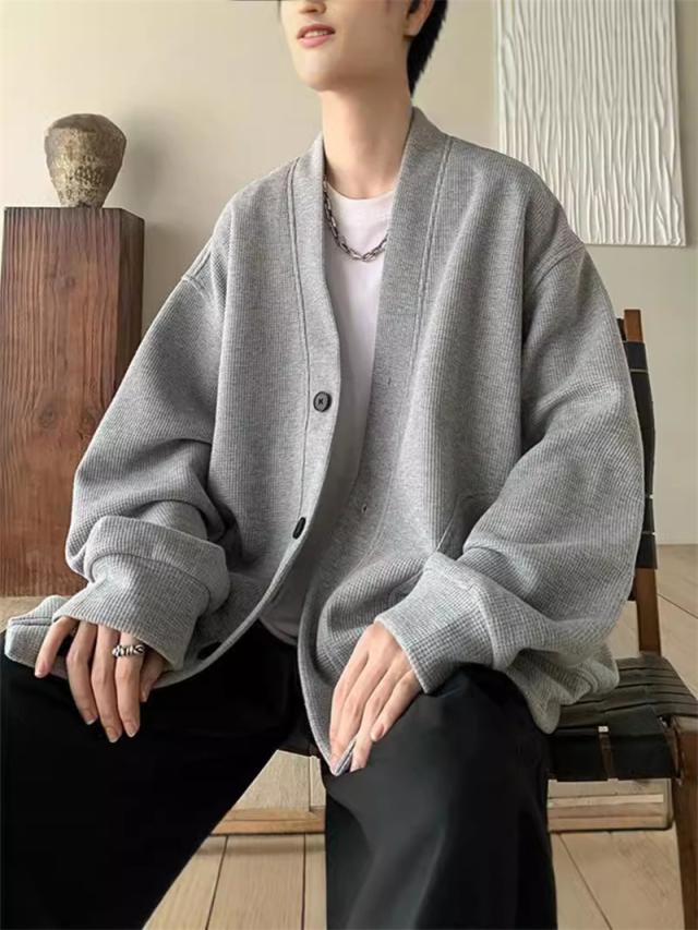ニットカーディガン メンズ パーカー 秋服 アウター 長袖 vネック スウェット パーカー トレーナー カジュアル ゆったり 大き