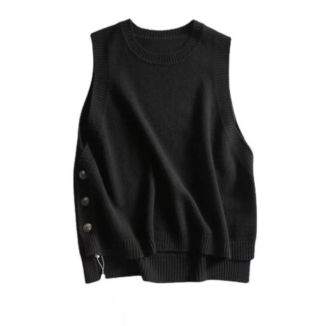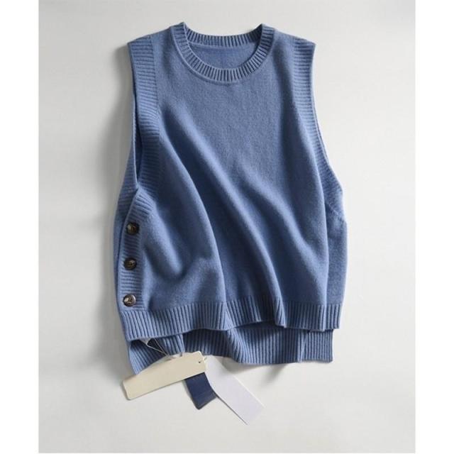 ニットベスト レディース ニットセーター ニットタンク トップス Uネック ノースリーブ プルオーバー 無地 ゆったり サイドスリ